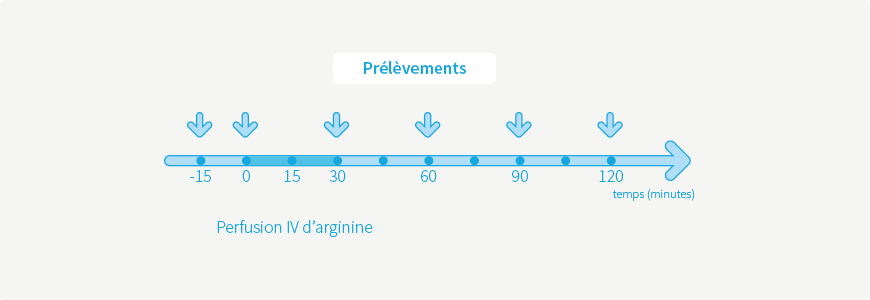 • Perfusion IV lente (en 30 min) de la dose appropriée d’arginine.