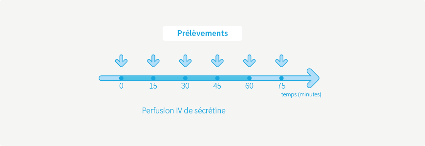 - Perfusion lente en 1 heure de la dose appropriée de sécrétine dans 250 ml de sérum physiologique.