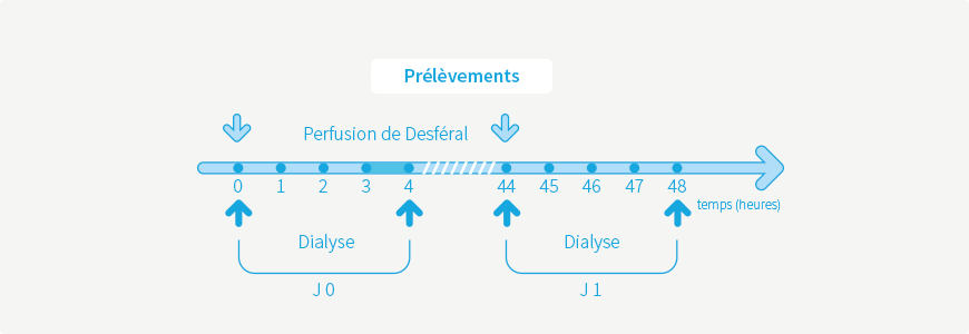 • Perfuser pendant la dernière heure de la séance de la dose appropriée de Desféral® dans du sérum physiologique.