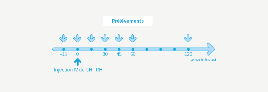 • Injection IV de la dose appropriée de GHRH.